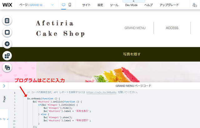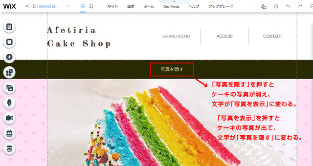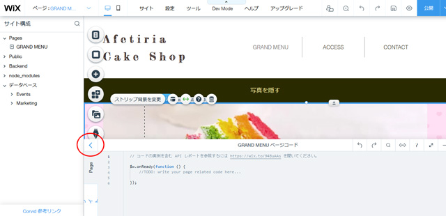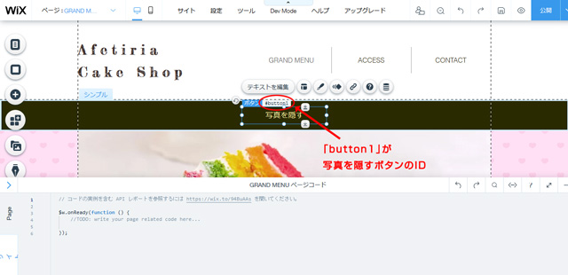 このような、ボタンクリックで別のパーツを制御する動作も、Wix Codeを利用することで実現可能となります。