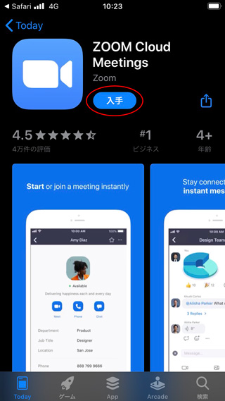 アプリのページで「入手」をクリックし、案内に従ってインストールします。